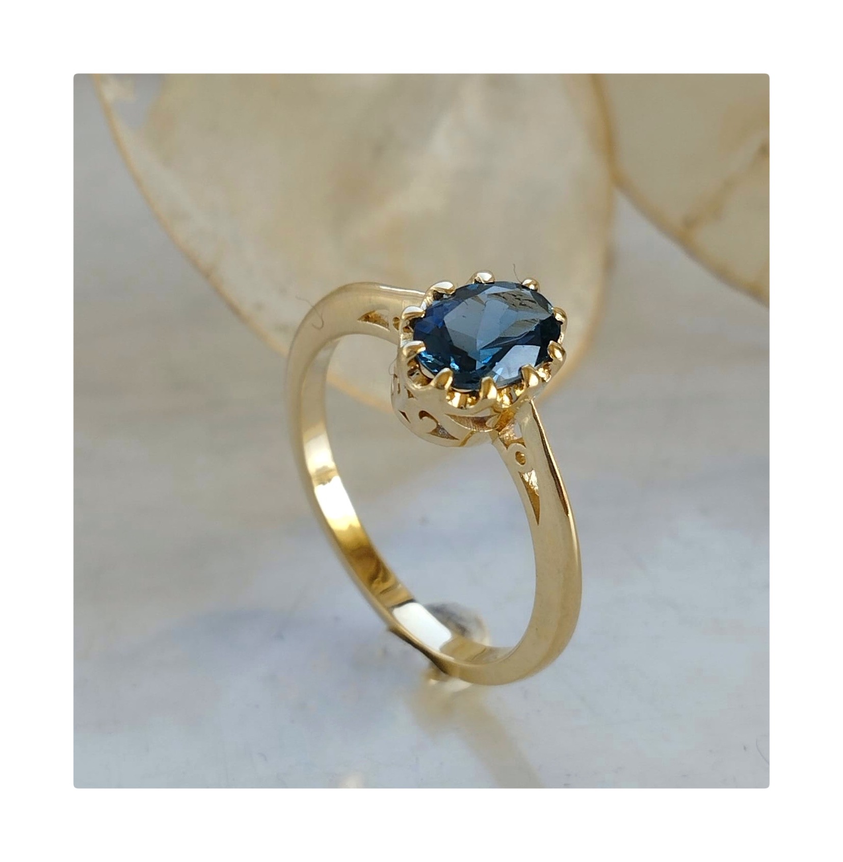 - kamień- topaz london blue o wymiarach 7X5 mm